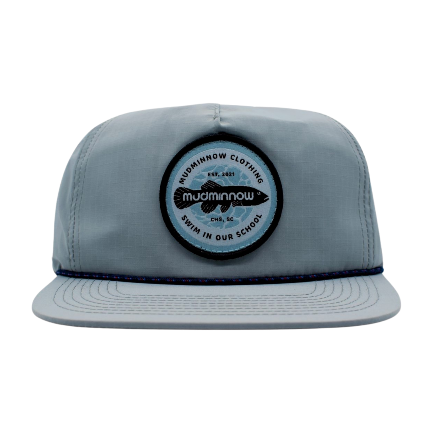 Thin recycled nylon constructed 5 panel snapback hat with rope and Mudminnow patch. DWR coated. This is our old style hat construction.